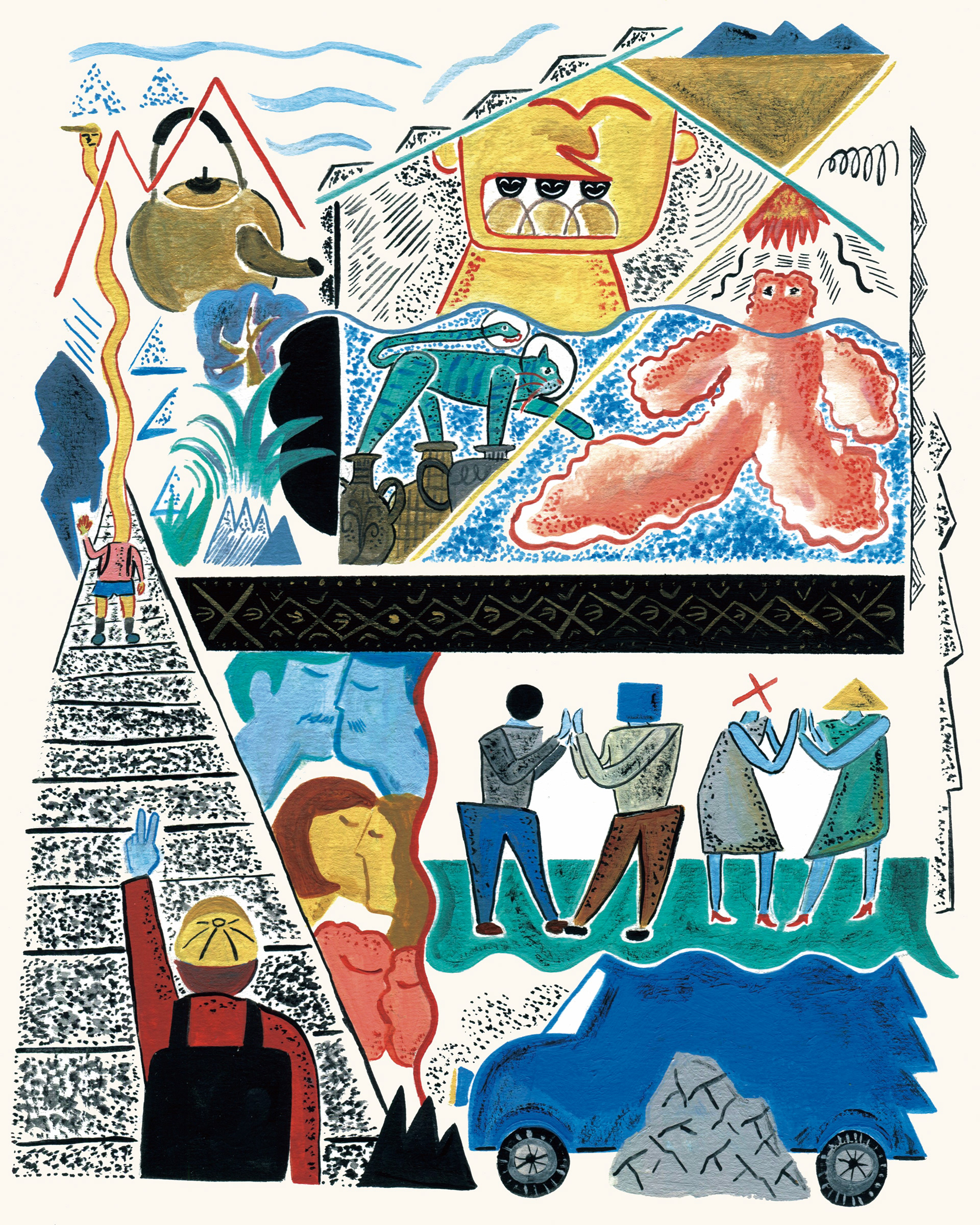 I made a short strange story based on "It was a good day" into a comic-like painting.