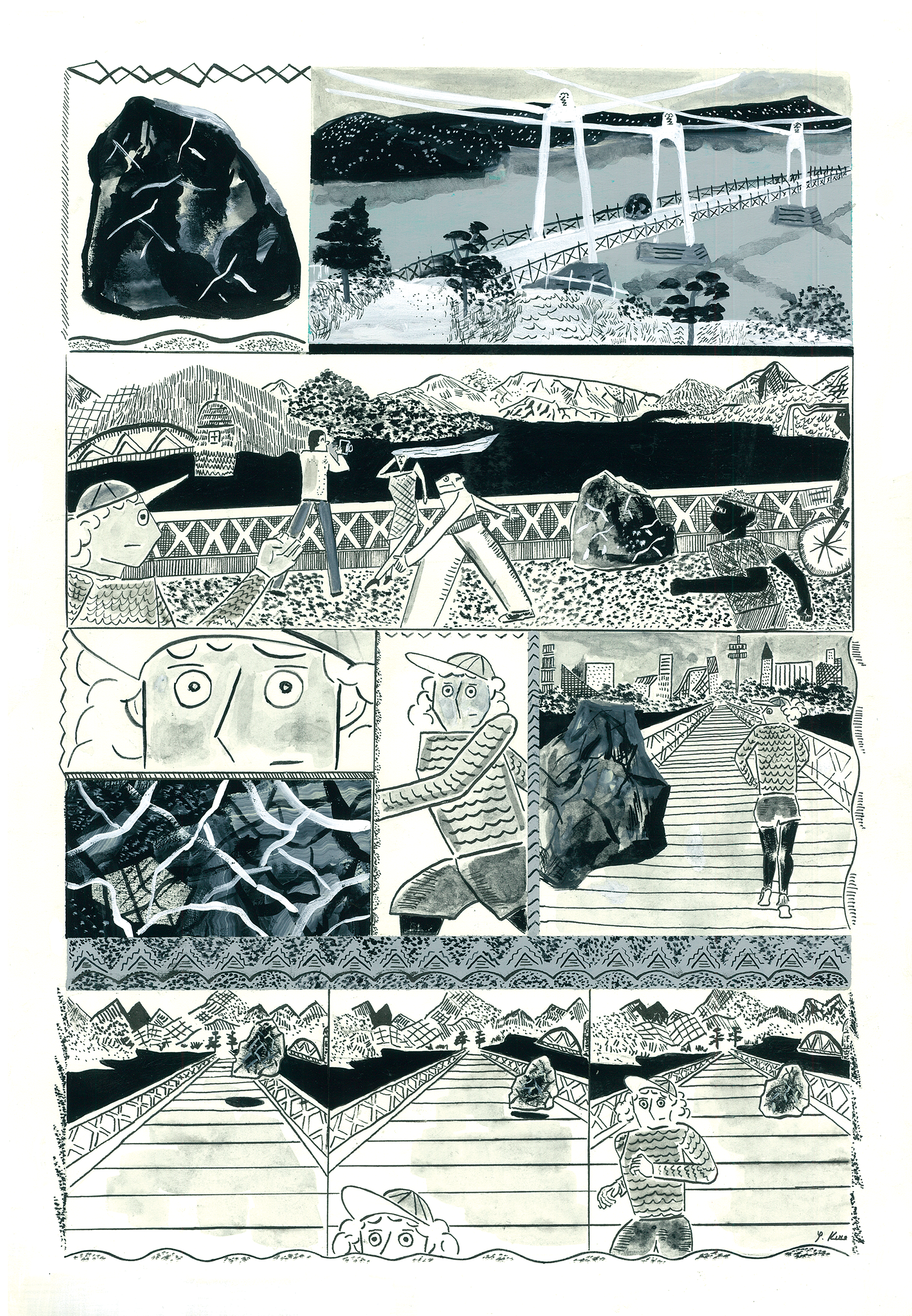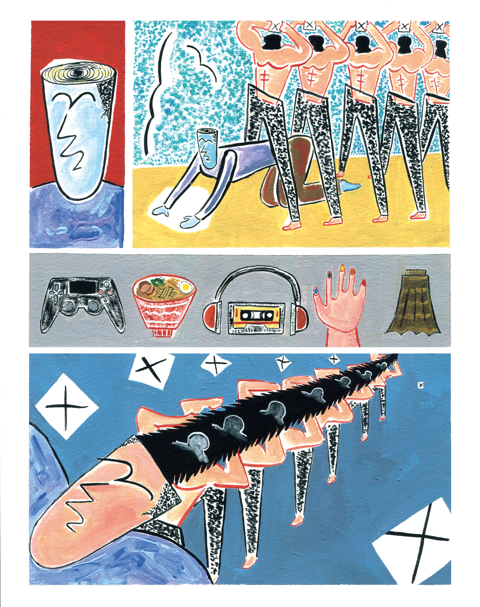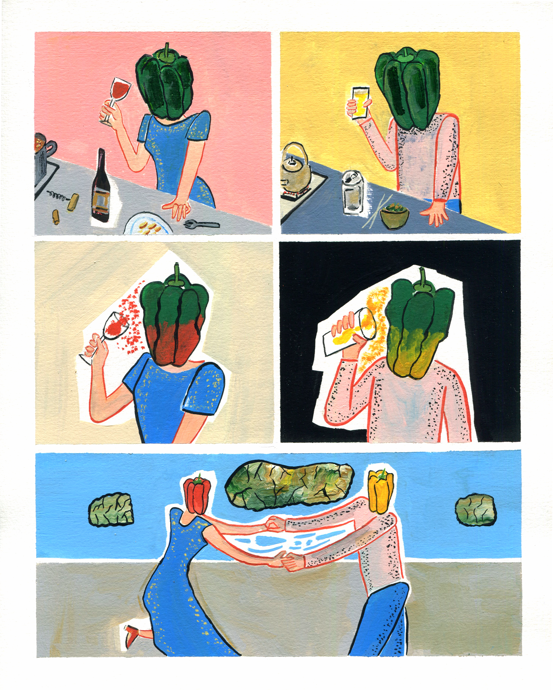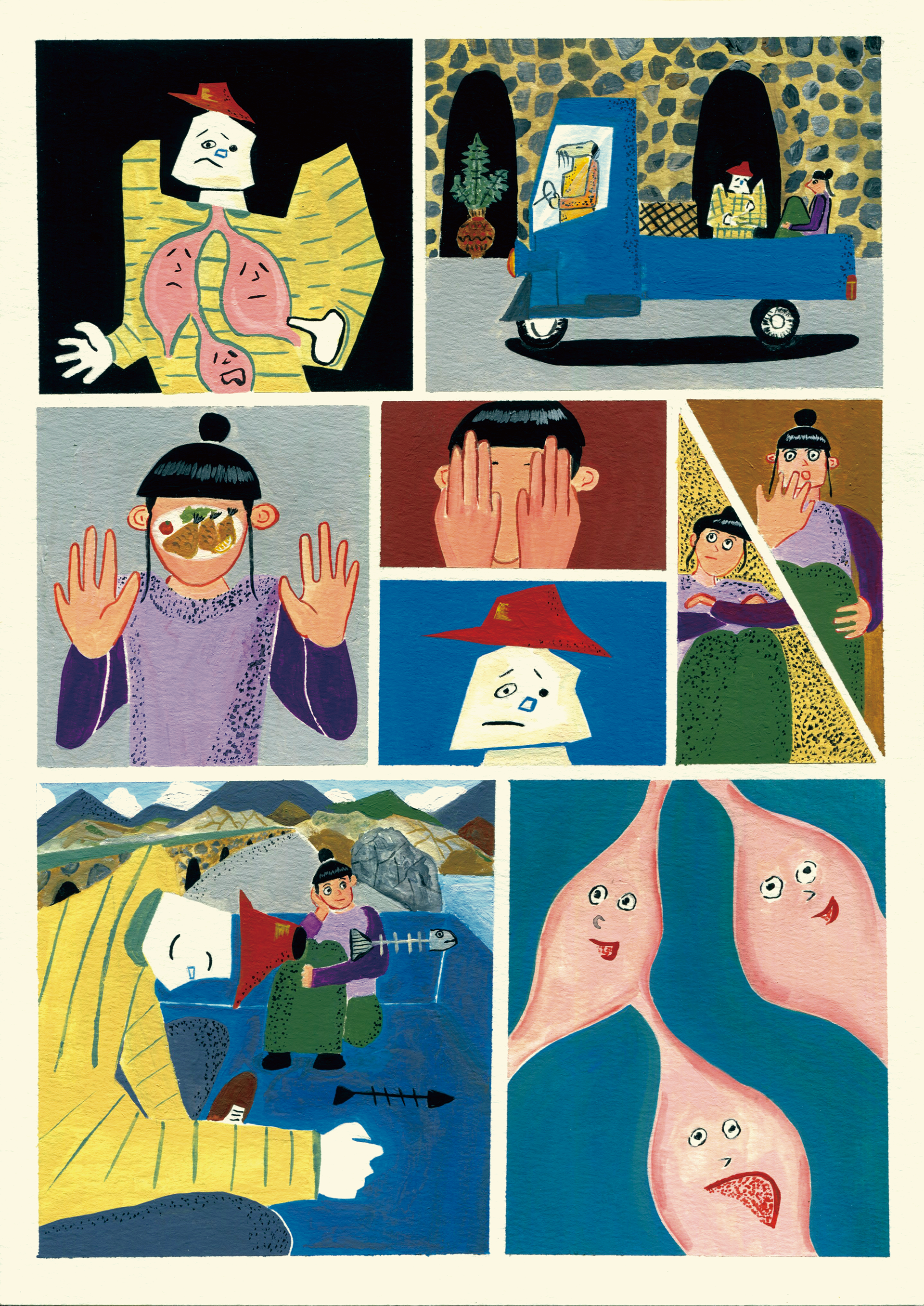 I made a short strange story based on "It was a good day" into a comic-like painting.