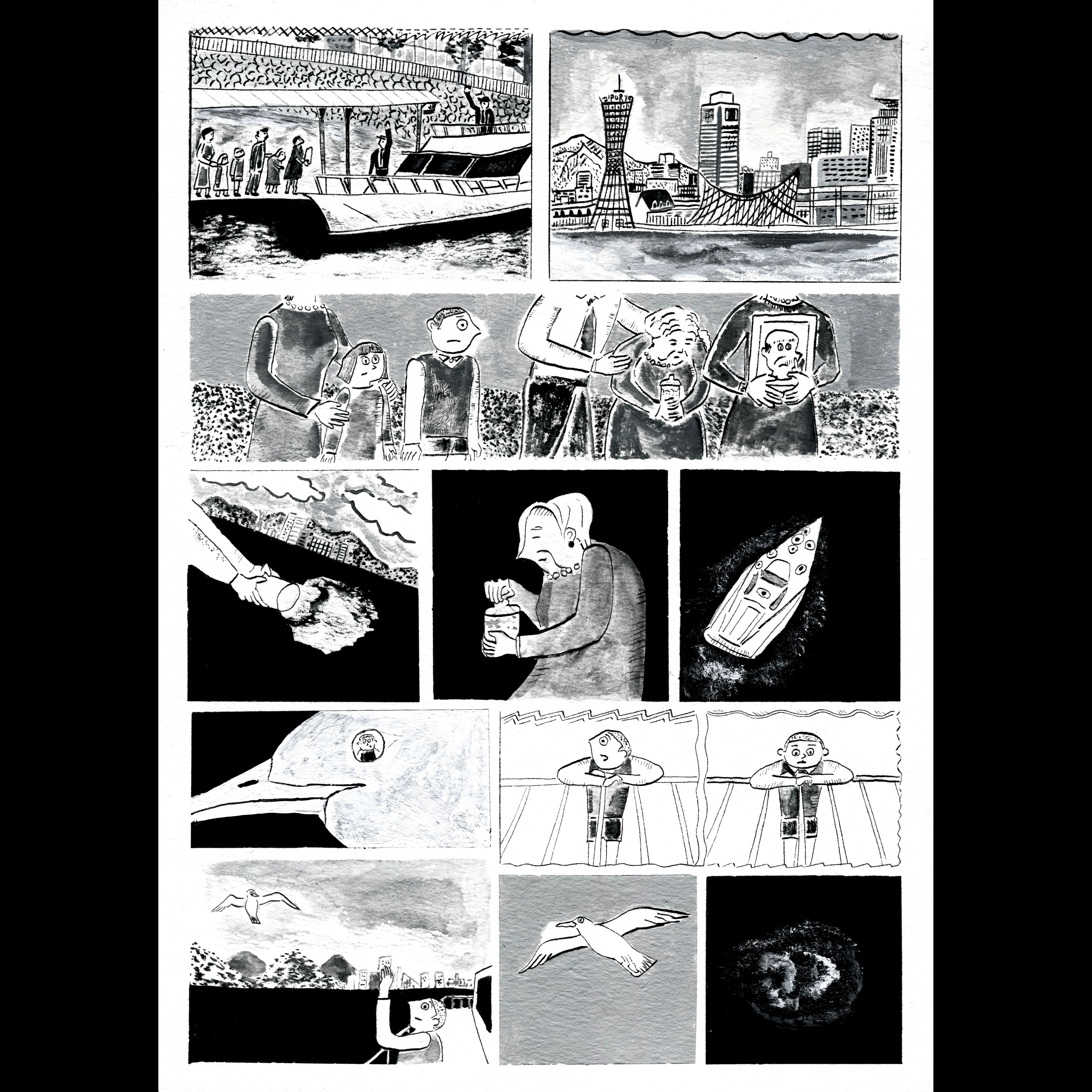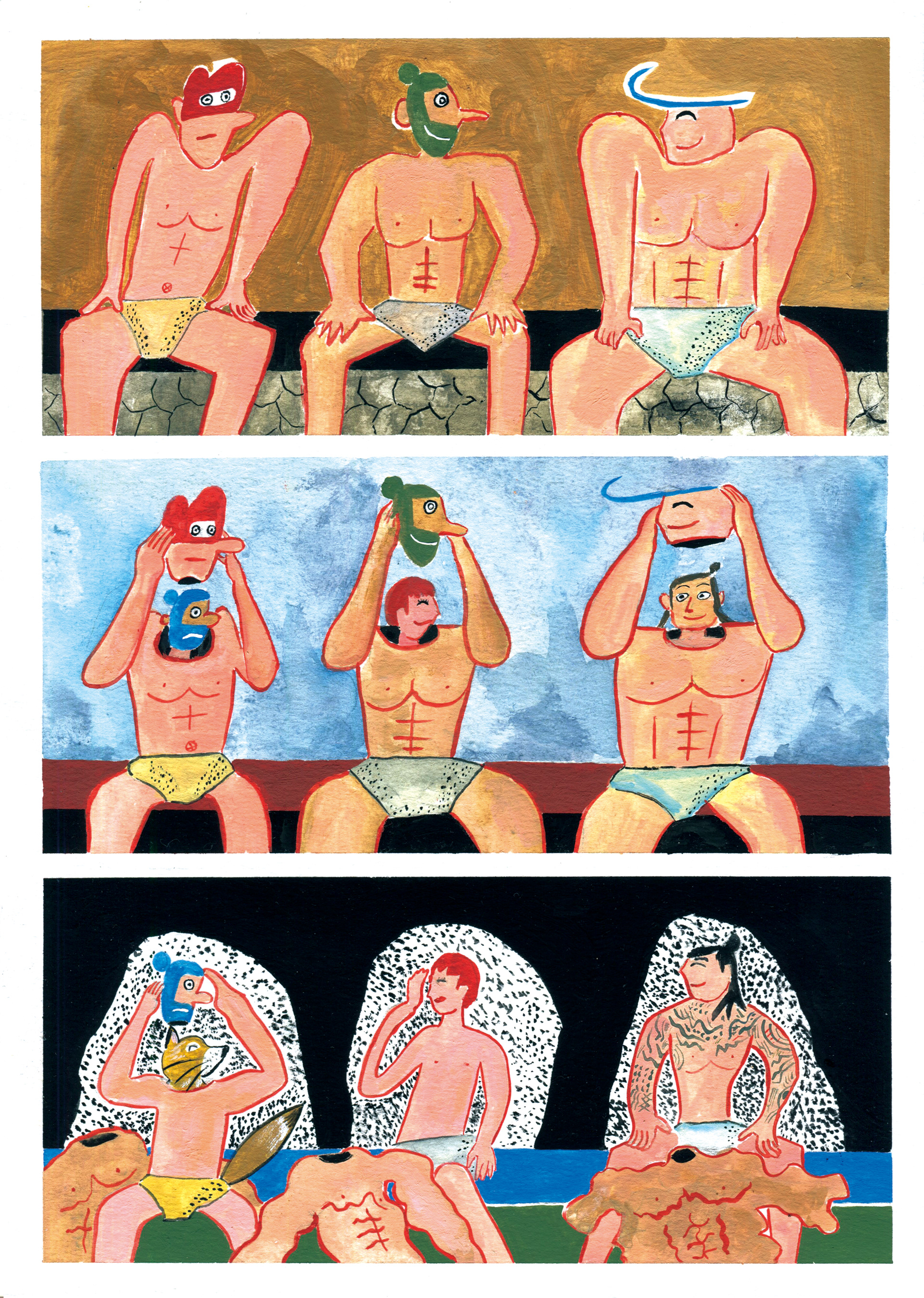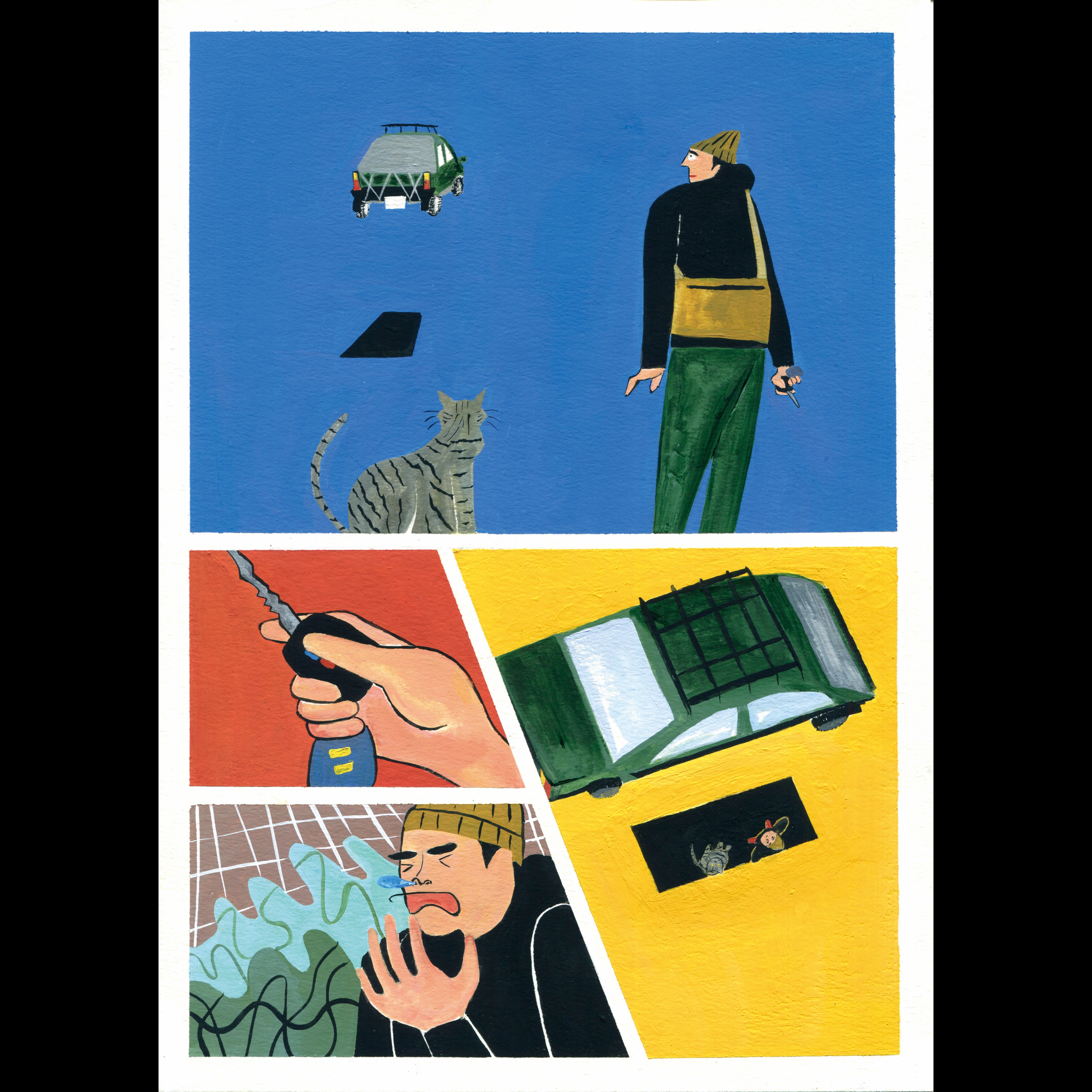 I made a short strange story based on "It was a good day" into a comic-like painting.