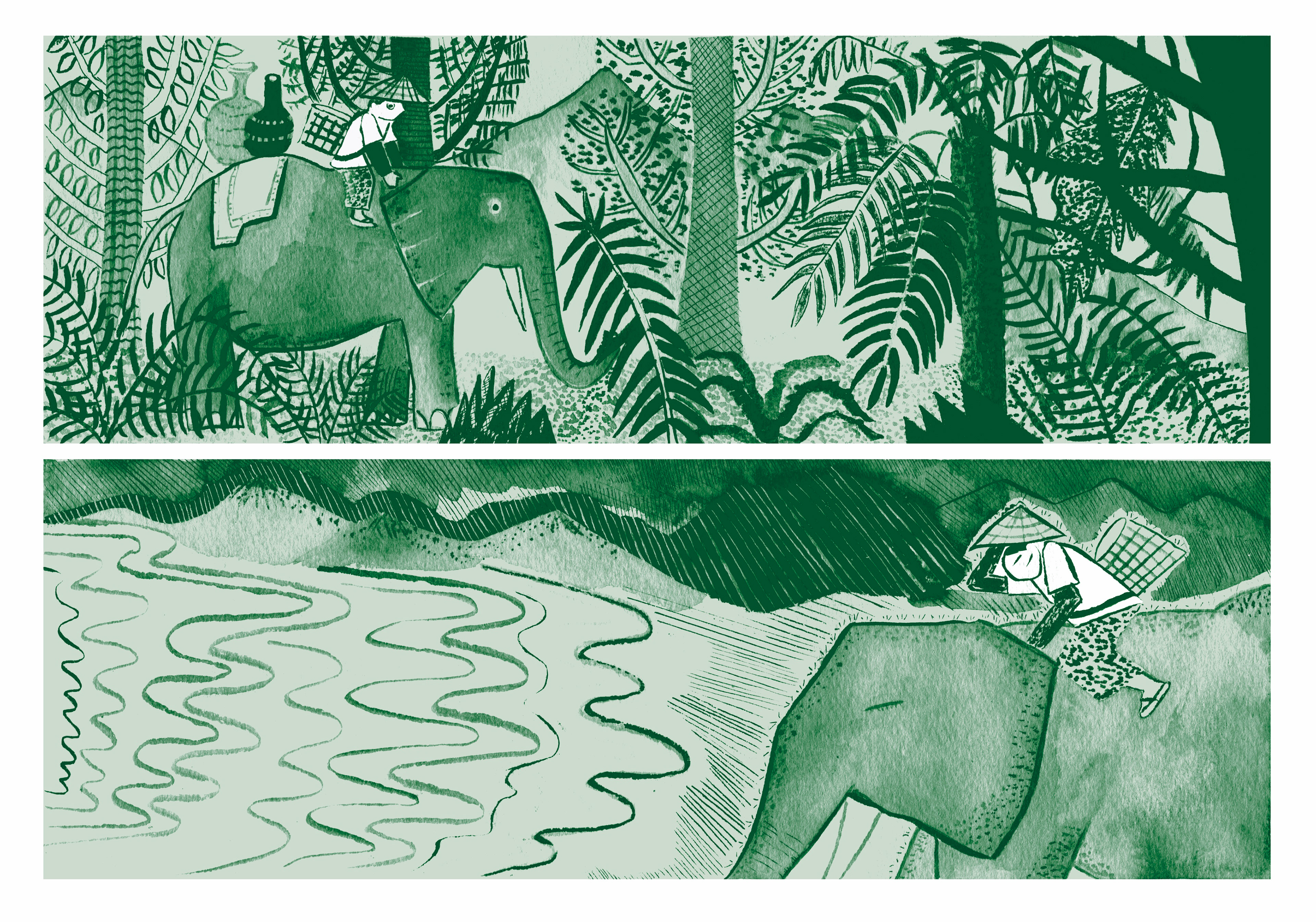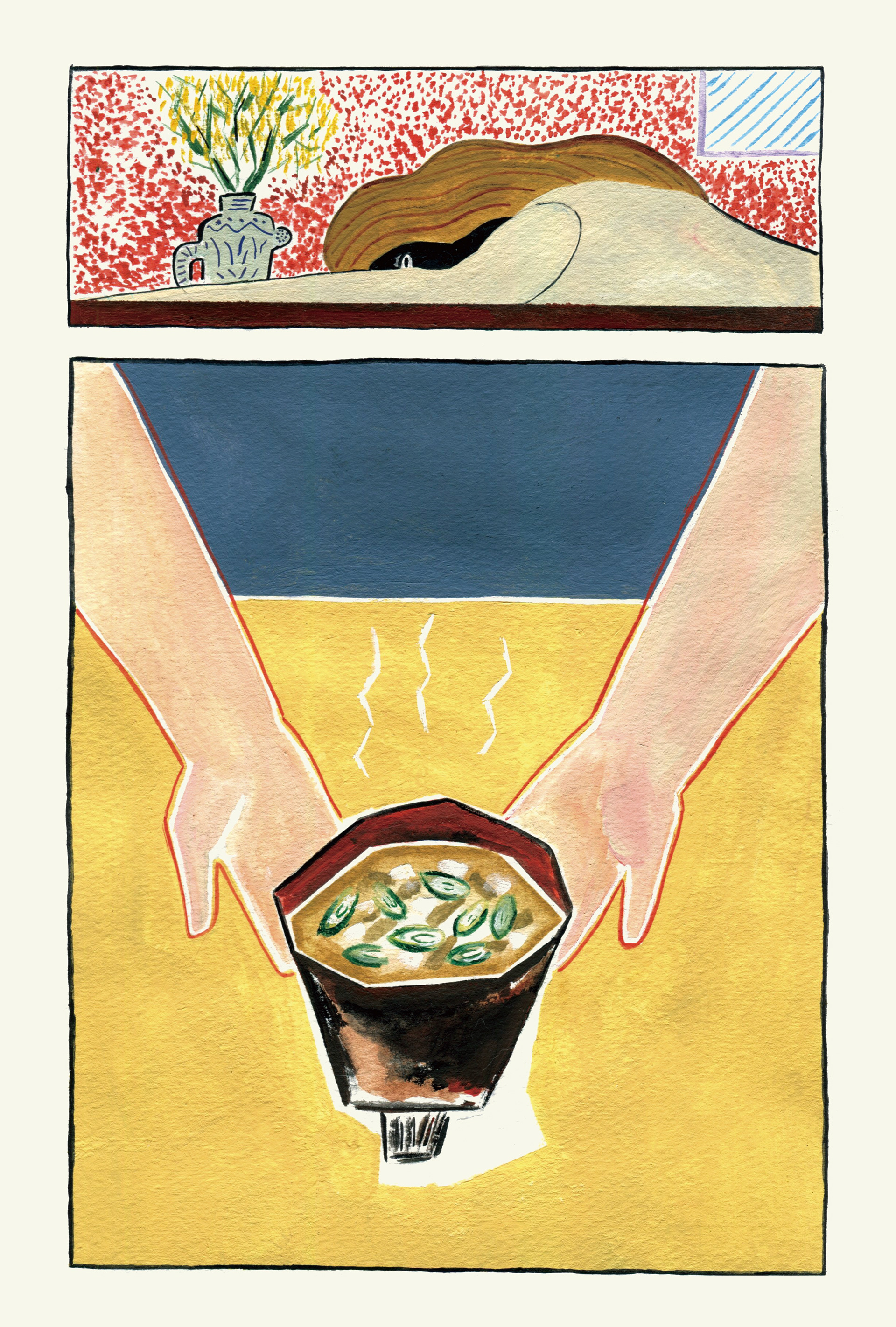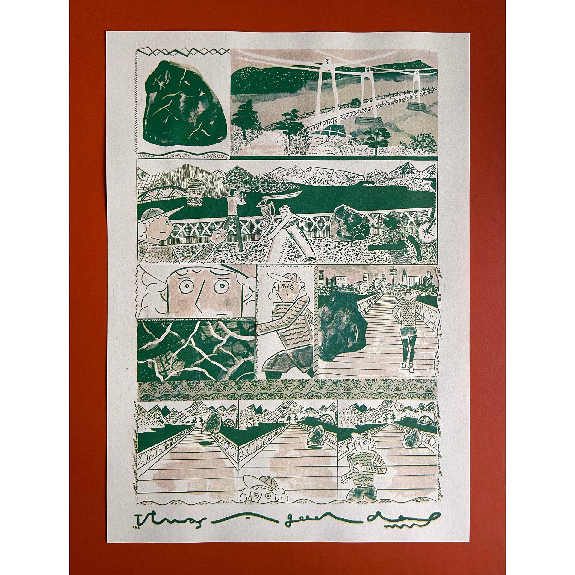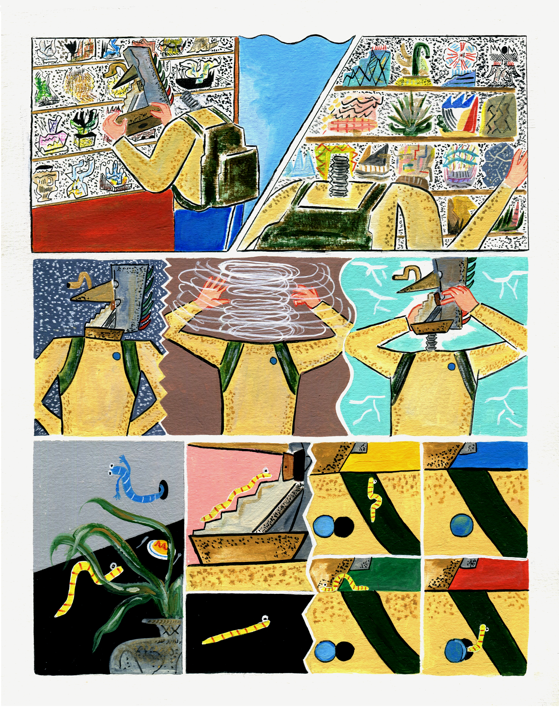 I made a short strange story based on "It was a good day" into a comic-like painting.